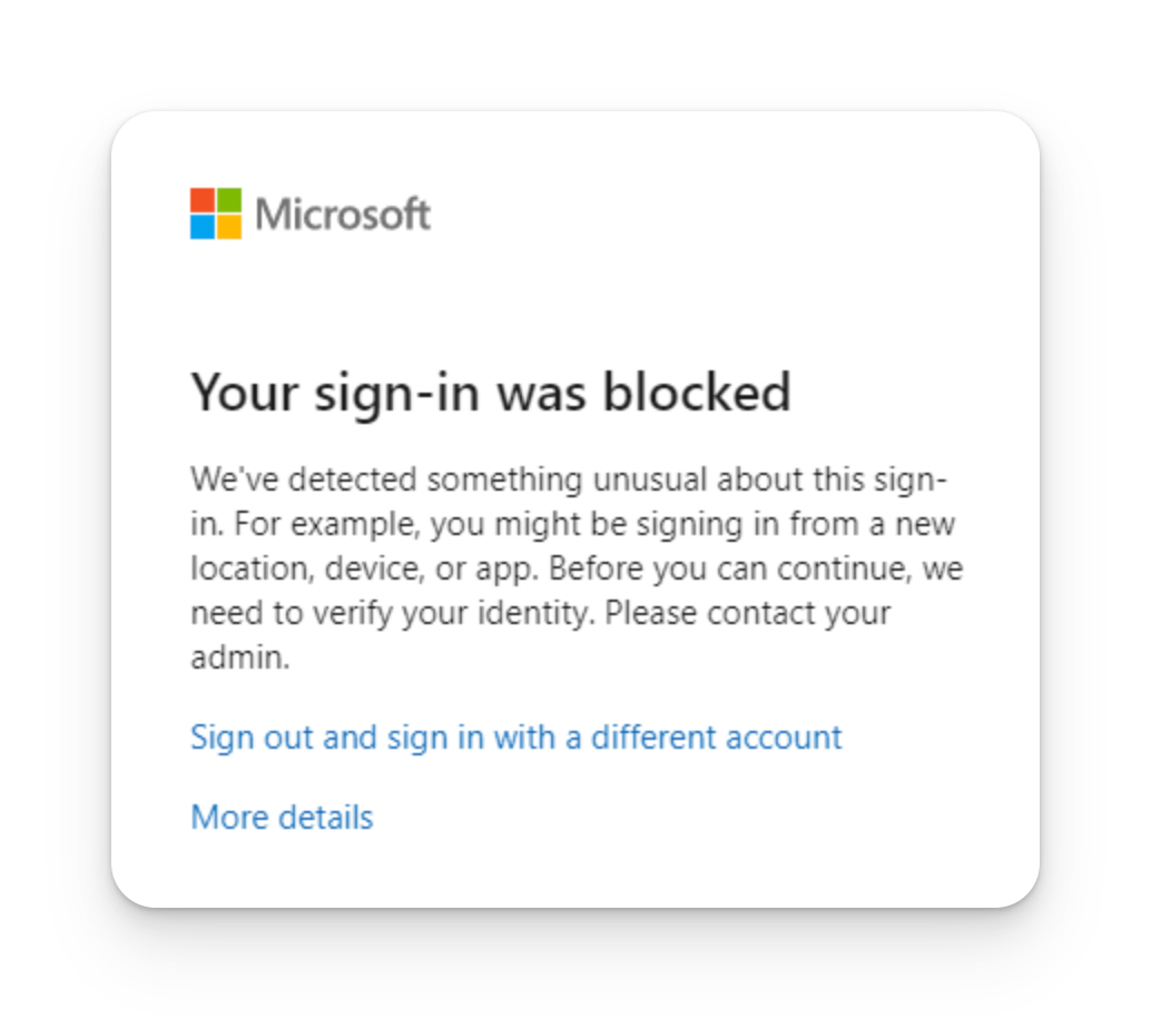 Additionally, your firm may have implemented policies to block logins unless accessing from specific locations, or through a specific network (such as a corporate VPN).