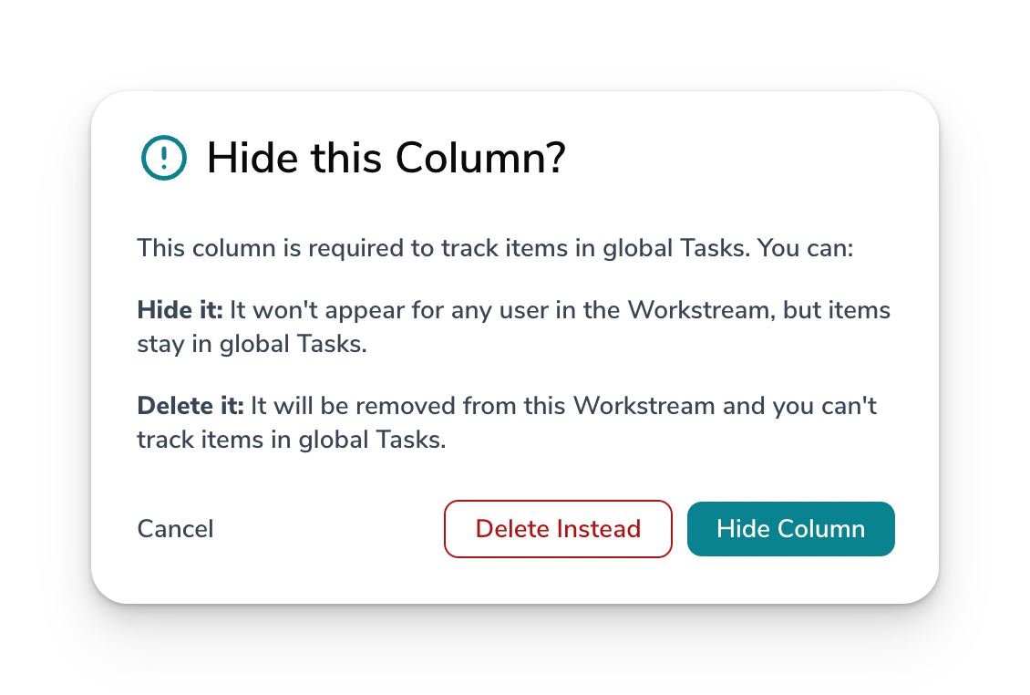 If you still rely on using this Workstream to track and manage your tasks, you can hide the column(s) instead.